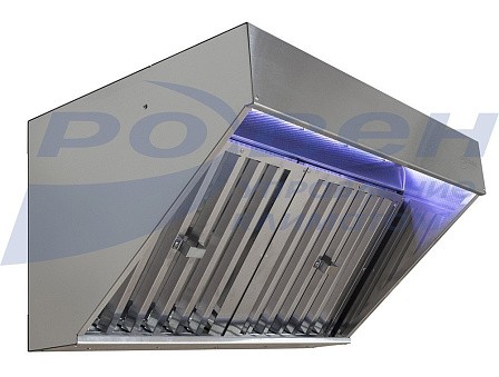 Зонты ЗВК представляют собой вентиляционный короб навесного типа, изготовленный из шлифованной листовой нержавеющей стали, в котором размещены устройства для вытяжной (фильтр) и приточной (рассеиватель) вентиляции. Зонты ЗВК изготавливаются 4х видов: