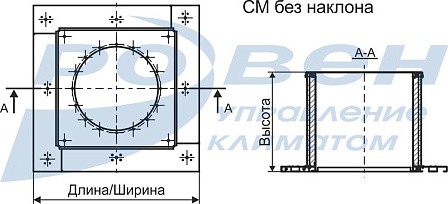 Компоновка стакана монтажного 12 - с обратным клапаном на вытяжку, предназначена для установки крышного вентилятора на кровле с уклоном.
