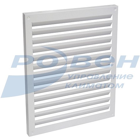 Решетки выполнены из единого листа оцинкованной стали. Угол наклона жалюзи 30°. Решетка окрашена термоусадочным порошковым покрытием в белый цвет. По отдельному запросу рассматривается возможность окраски в любой другой цвет по каталогу RAL.